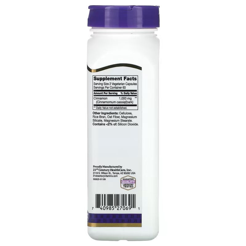 - 21st Century is a reputable brand known for its affordable, high-quality supplements, and this cinnamon product is no exception.