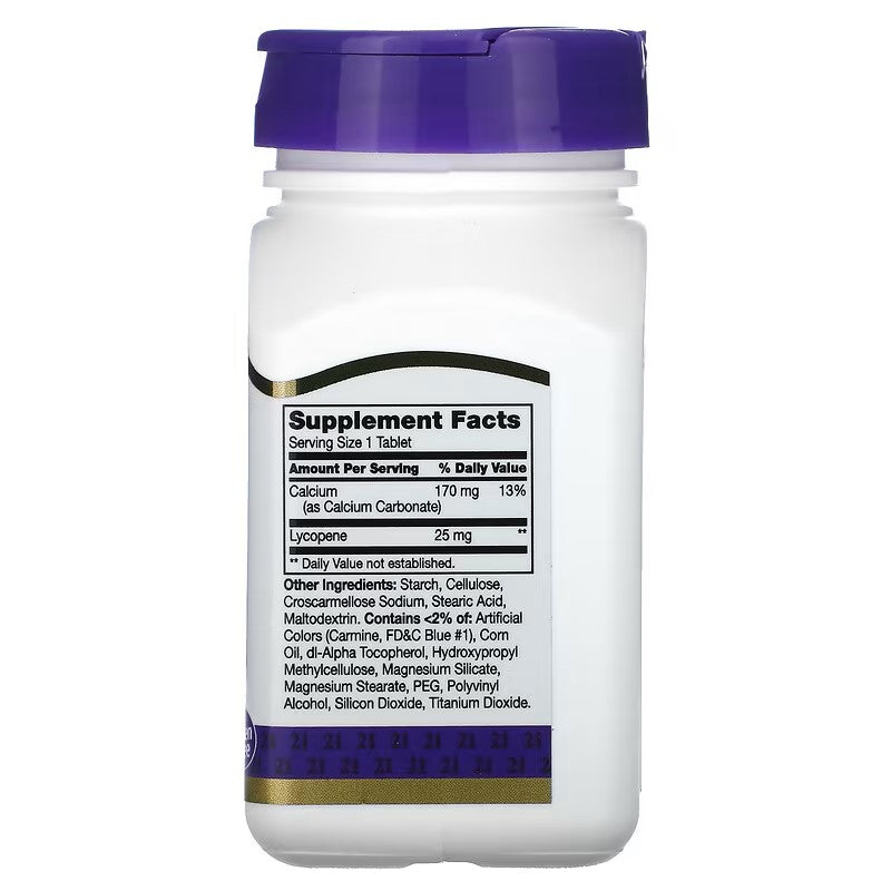 21st Century Lycopene 25 mg is a dietary supplement that delivers a potent dose of lycopene in each capsule. Lycopene is a carotenoid with powerful antioxidant properties, primarily known for its presence in tomatoes and other red and pink fruits.