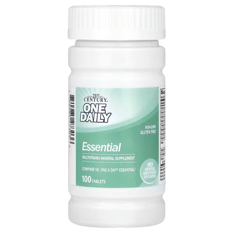 21st Century One Daily, Essential is a convenient and comprehensive multivitamin supplement designed to support your overall health and well-being. With just one tablet per day, this multivitamin provides essential vitamins, minerals, and nutrients that help fill in any nutritional gaps in your diet. The formula is crafted to promote general health, energy levels, immune function, and vitality, making it a simple addition to your daily routine.