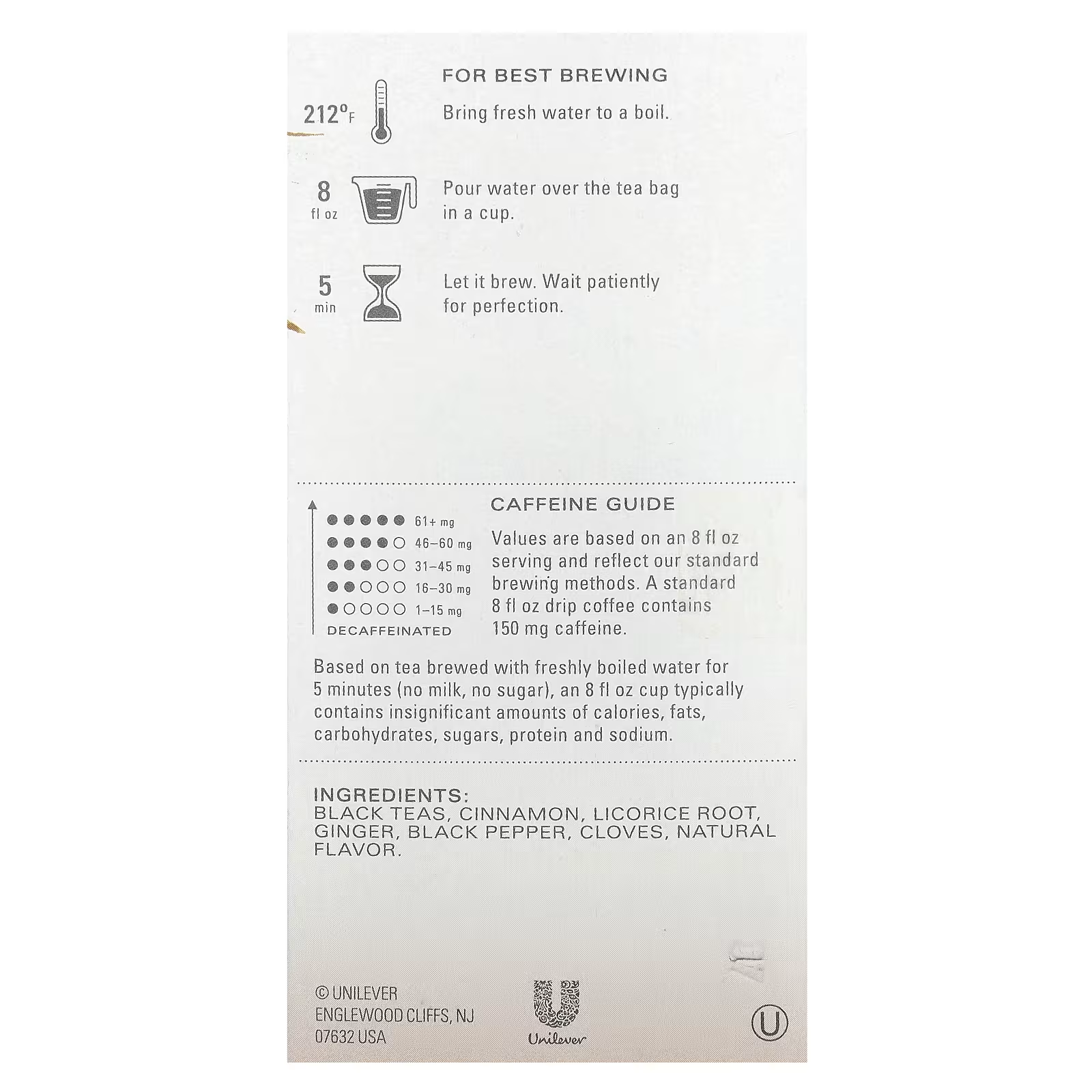 - Kosher Certified: TAZO Vanilla Caramel Chai is certified kosher, making it suitable for a wide range of dietary preferences.