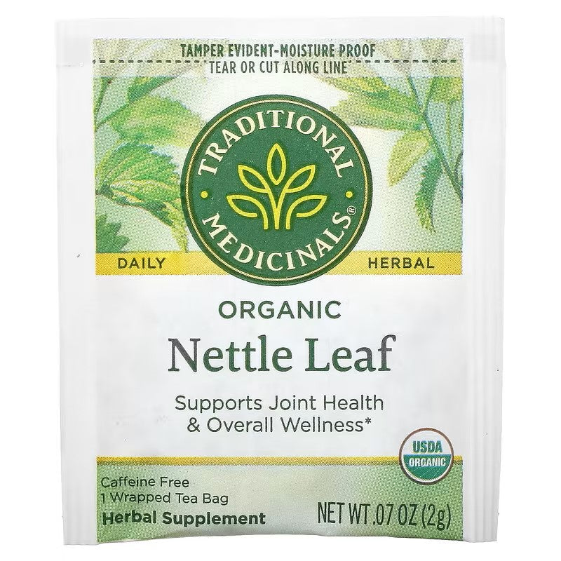 Traditional Medicinals' Organic Nettle Leaf Tea is a caffeine-free herbal infusion traditionally used to support overall wellness and joint health.