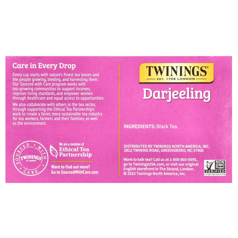 Twinings Pure Black Tea: Darjeeling is a refined and aromatic tea known as the "Champagne of Teas" for its delicate and unique flavor profile. Sourced from the foothills of the Himalayas in Darjeeling, India, this tea offers a light, floral, and slightly musky taste, making it a favorite for afternoon sipping.